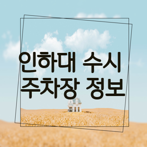 이번 포스팅을 통해 인하대학교 인근 주차장 정보를 총정리해 드렸습니다. 수시 전형에 지원하신 인하대 수험생 시험 당일 주차 걱정 없이 편안하게 시험에 임하실 수 있기를 바랍니다.